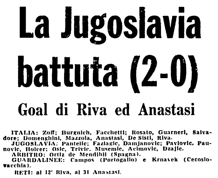 „Po 30 latach rozczarowań osiągnięcie prestiżu”- brzmiał tytuł na stronie L’Unità z dnia 11 czerwca 1968. Dzień wcześniej w drugim … Czytaj dalej Historyczne Mecze Mistrzostw Europy – 10 czerwca